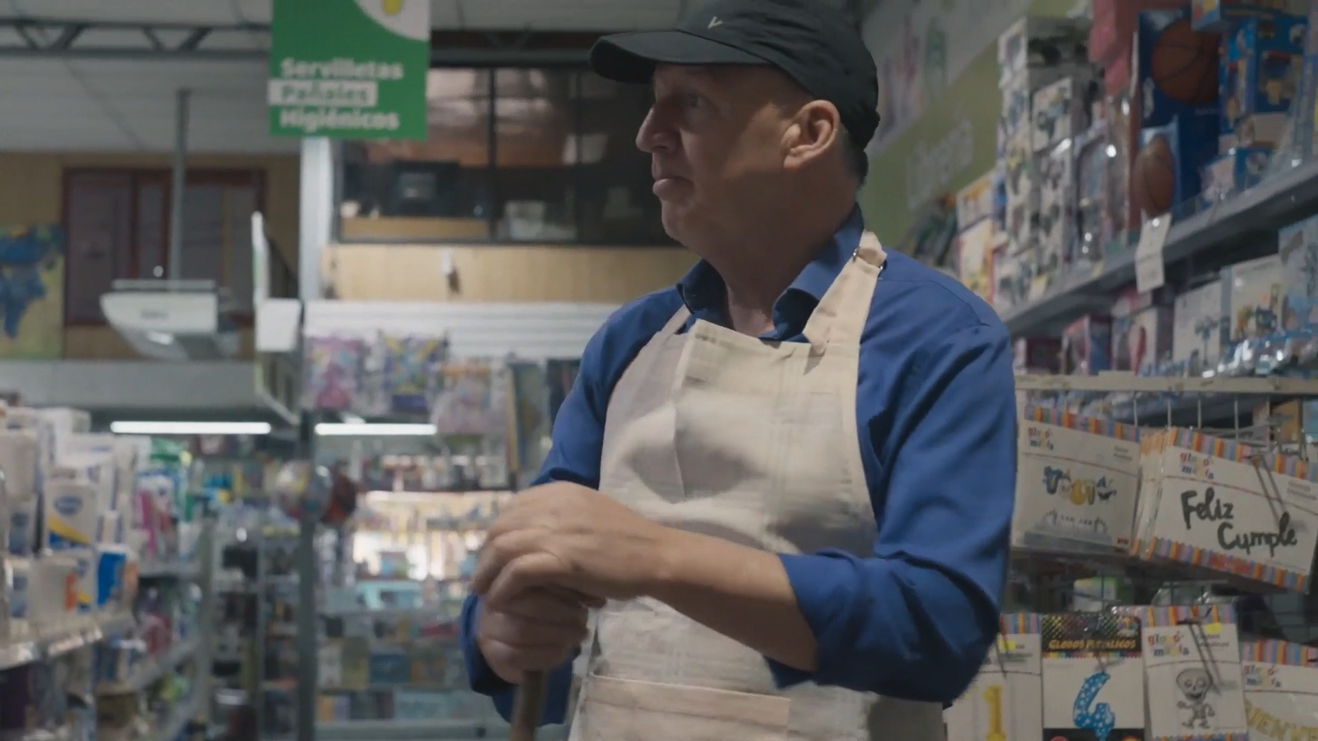 Por más que parta mencionando una “torpeza”, La corazonada está lejos de sostener su indisciplina sobre la agramaticalidad o la incorrección visual. Poco después de este corte, Martín se queda pegado viendo el viento en las ramas mientras rastrilla. Aparece su rostro descansando sobre el palo, seguido del árbol que interrumpe brevemente su concentración en el trabajo. Campo y contracampo en el sentido fundamental hollywoodense: la observación de lo bello incluye también a su observador. Hacia la mitad de la película, cuando Enrique cree ver a Nieves en el supermercado en el que trabaja , sucede nuevamente: la espalda y el cabello blanco (campo) y el rostro incrédulo de Enrique (contracampo).